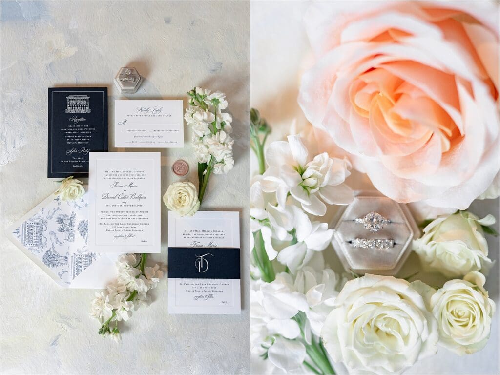 Venue: Detroit Athletic Club | Planning: Dreams2Vision Events | Florals: Bellisario Florist | Photography: Rachel Mercer Photography | Content Creation: Sprouts Content | Entertainment: The Brian Alexander Band | Gown: Roma Sposa | Hair: Team Glam Detroit | Makeup: Arbela Beauty | Invitations: Jade Social