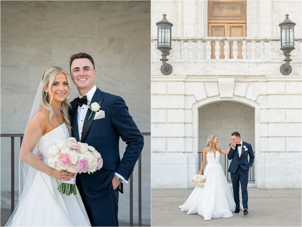 Jennie with Dreams2Vision Events and Bellisario Florist transformed the DAC into the most beautiful space adorned with pink and white florals. Their custom wedding logo tied every detail together perfectly. It was such a beautiful celebration of Trina and Dan’s big, big love for one another. The bride and groom wore the biggest smiles on their faces all day long!